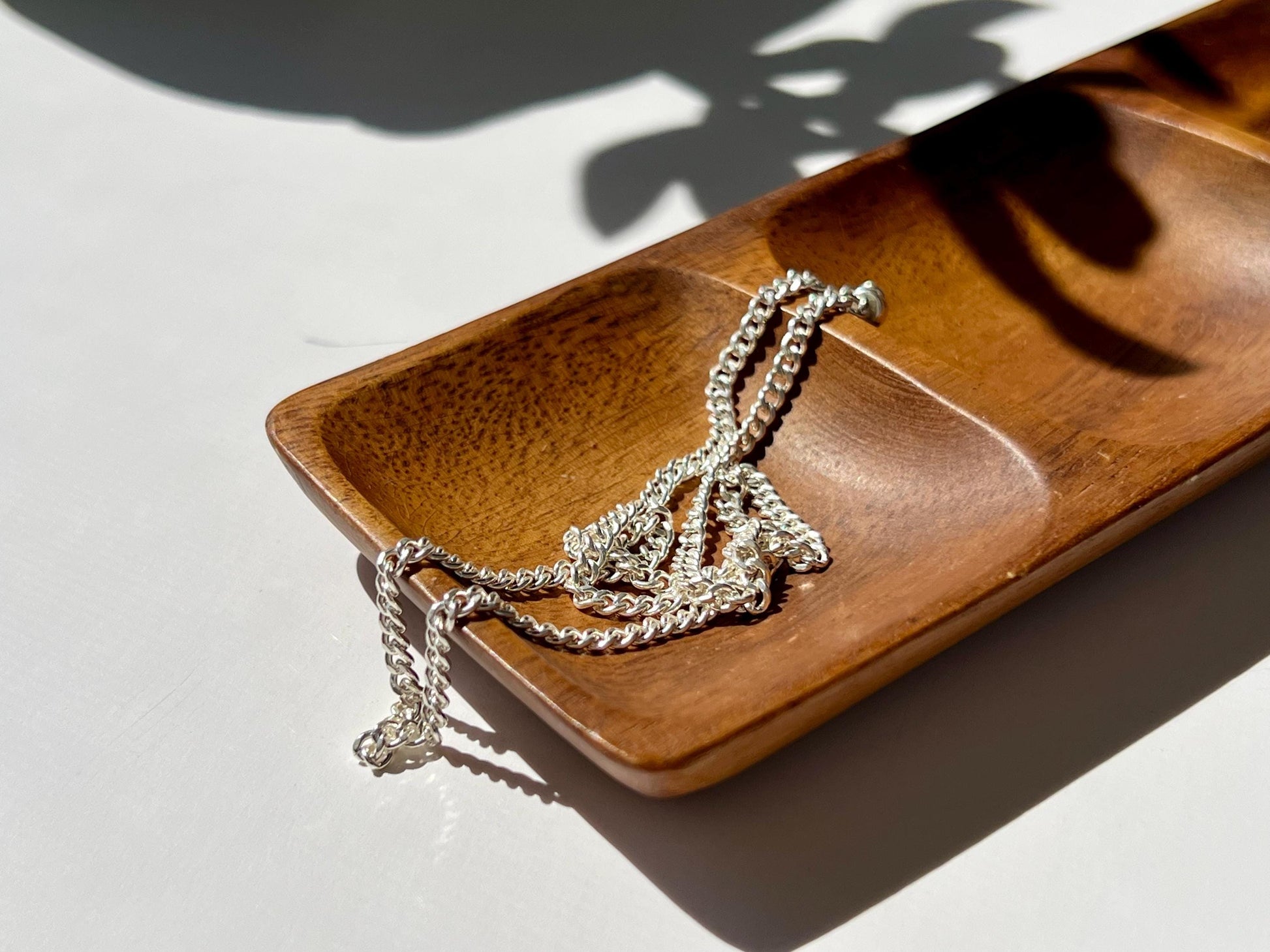 All of our jewelry is made with .925 sterling silver chain and findings. It is nickel free and will never chip, flake, change color or cause skin irritations. Safe to wear every single day. Sterling silver is safe to wear in water but should not come in contact with harsh chemicals. Sterling silver is prone to tarnish over time. There is nothing that will completely prevent tarnishing, but it is easily removed with any silver polishing cloth or cream. Silver being worn continuously will stay bright.