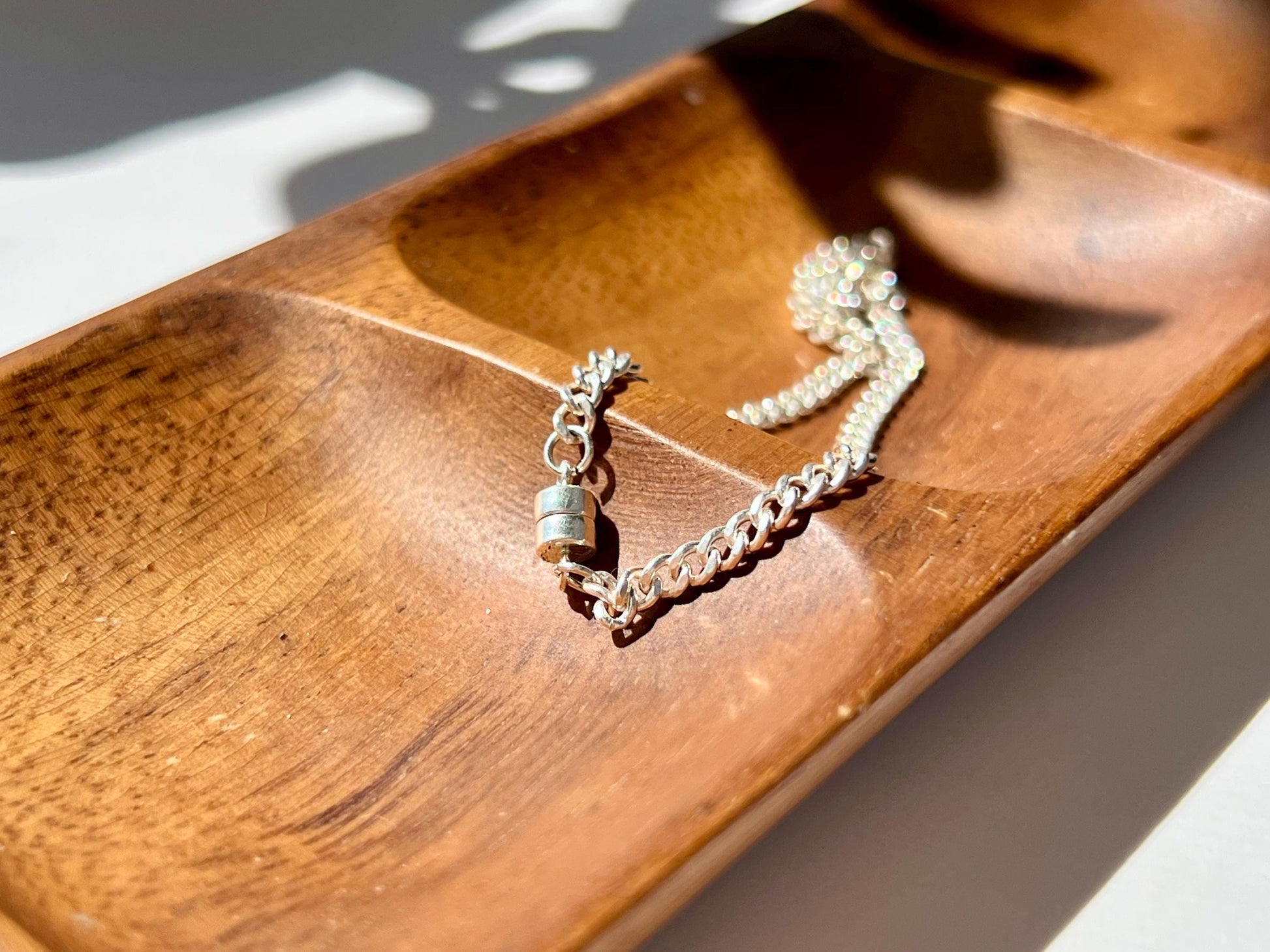 We have chosen to use magnetic clasps for all our jewelry pieces. These clasps provide a more accessible option for anyone with physical limitations that make traditional clasps difficult to use.